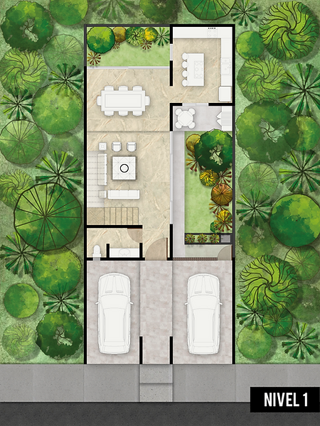 Proyecto de inversión en fraccionamiento privado en un terreno de 144m2. Castaño T-108 cuenta con un patio central que ayuda con el ingreso de luz natural, la mejora de las condiciones de ventilación y la posibilidad de potenciar la conexión con la naturaleza sin que esto implique una pérdida de la privacidad. Apoyándonos mucho en la luz superior, utilizamos la técnica de los niveles para llevar la luz a todos los espacios y también para unificar y dividir la casa. El acceso más fácil a la planta baja lo convirtió en un espacio tradicional para los padres. Su dormitorio entra hacia el frente, abriéndose a un estrecho jardín trasero.